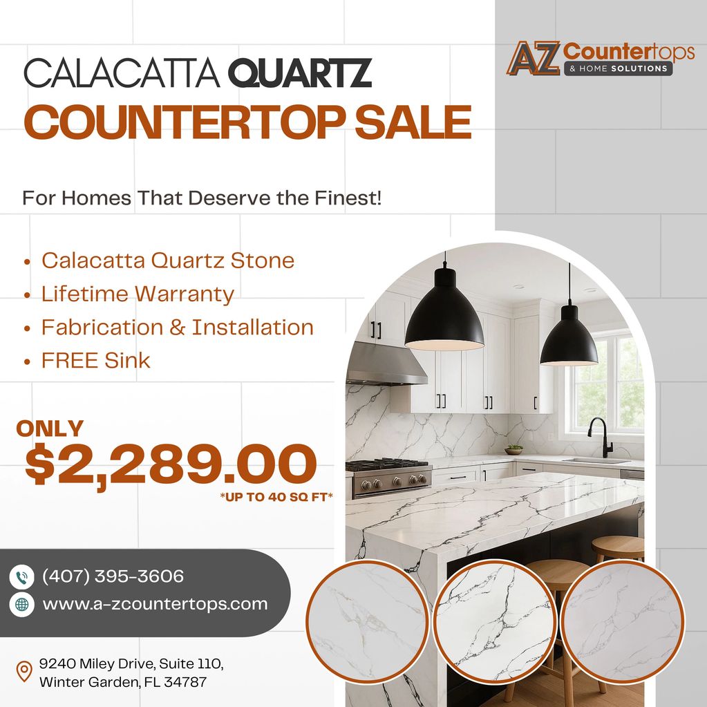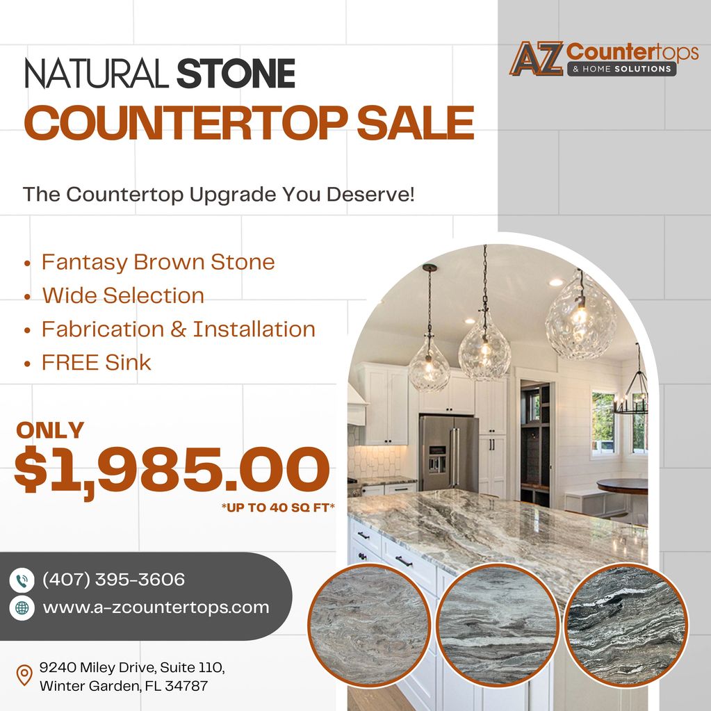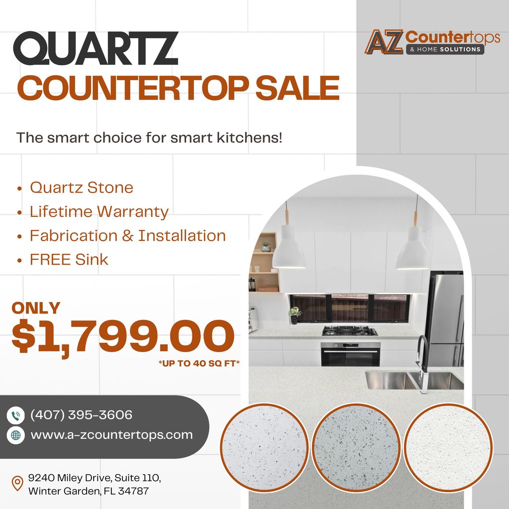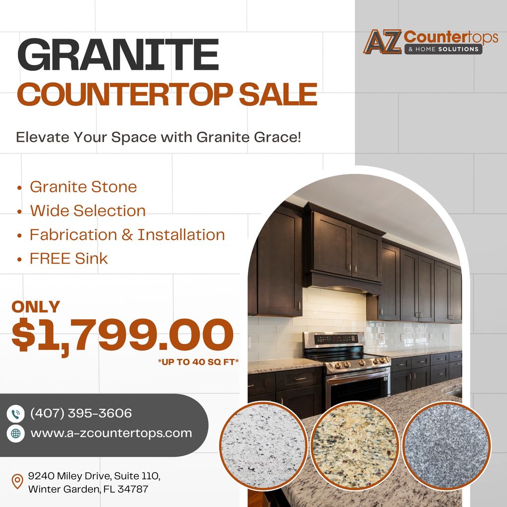Transform your kitchen or bath with stunning countertops starting at $1,799.00 — and yes, the sink is FREE!