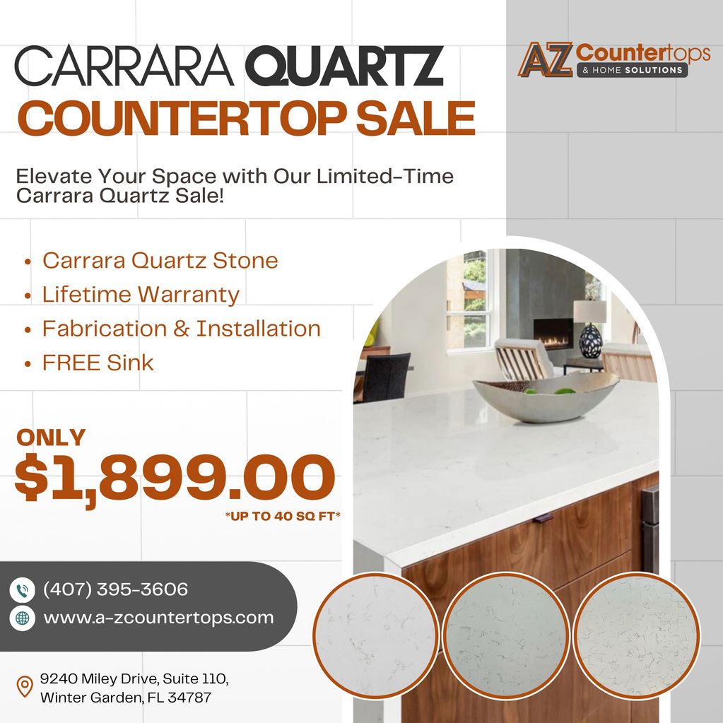 Bring classic beauty and modern durability into your home with Carrara Quartz — a refined white surface featuring delicate, subtle veining that mimics the look of natural marble without the maintenance.
